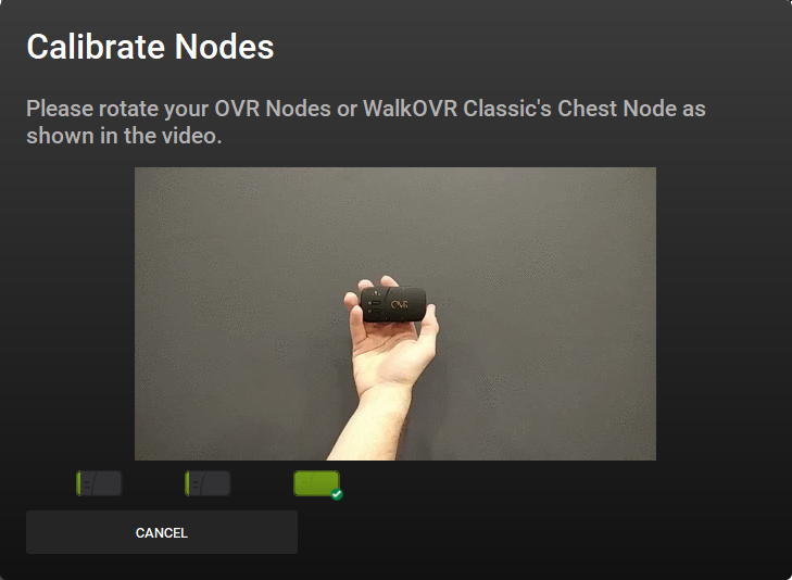 You should use the 3-stage dynamic calibration system for OVR Nodes to give more precise data and to assign any position. At first, you have to do all 3 stages of the calibration sequentially, but when you want to improve the experience or assign OVR Nodes from one position to another, you can start from the 2nd or directly from the 3rd stage.